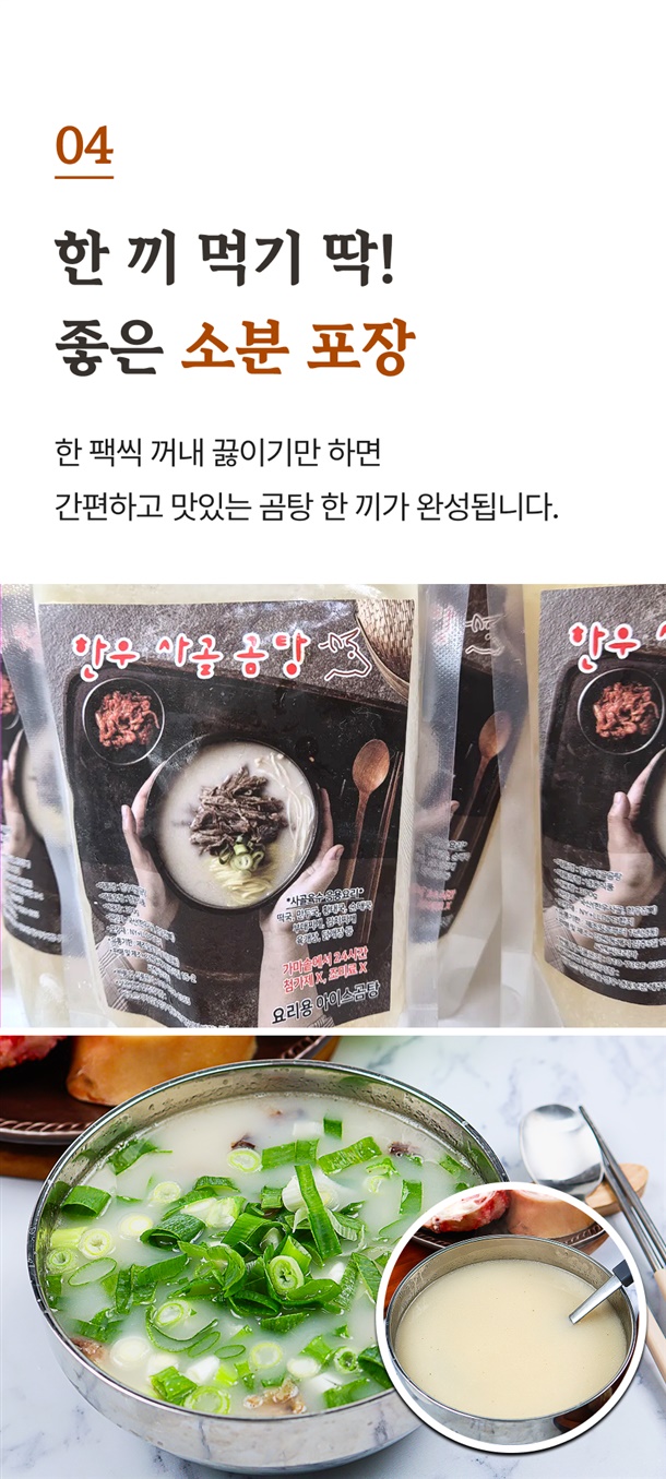 | 1.포장단위별용량 | 가마솥 한우곰탕 500g/10팩 |